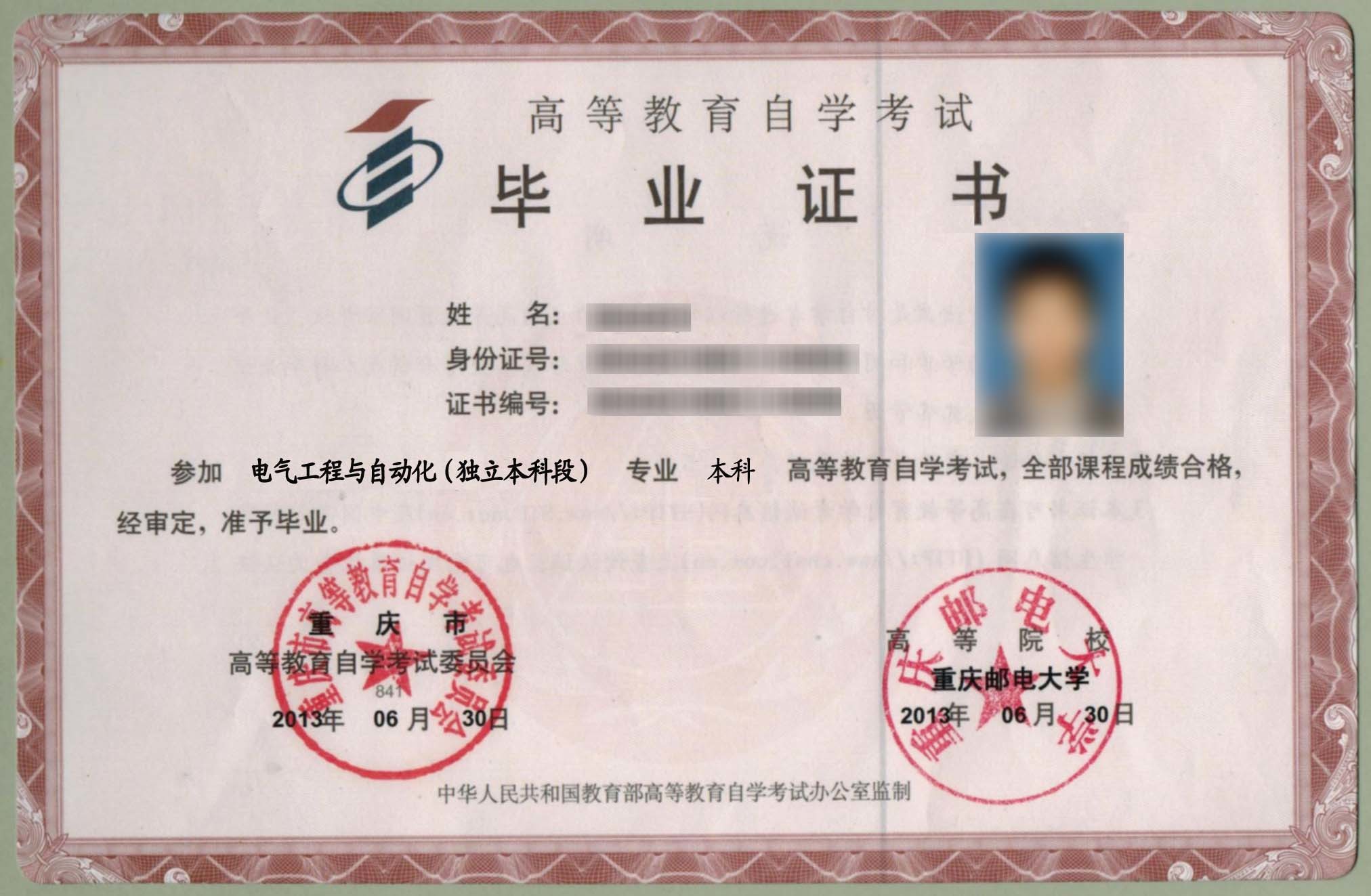重慶大專自考畢業(yè)證樣本